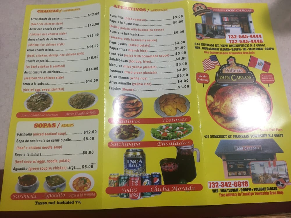 Introducing Don Carlos Number 1, a vibrant Peruvian gem located at 316 Suydam St, New Brunswick, NJ. This Latinx-owned restaurant offers a delightful experience with its enticing menu featuring authentic dishes such as Pollo a la Brasa and Arroz Chaufa, both praised for their generous portions and rich flavors. Perfect for families and groups, Don Carlos caters to various dining needs, providing takeout, delivery, and outdoor seating.